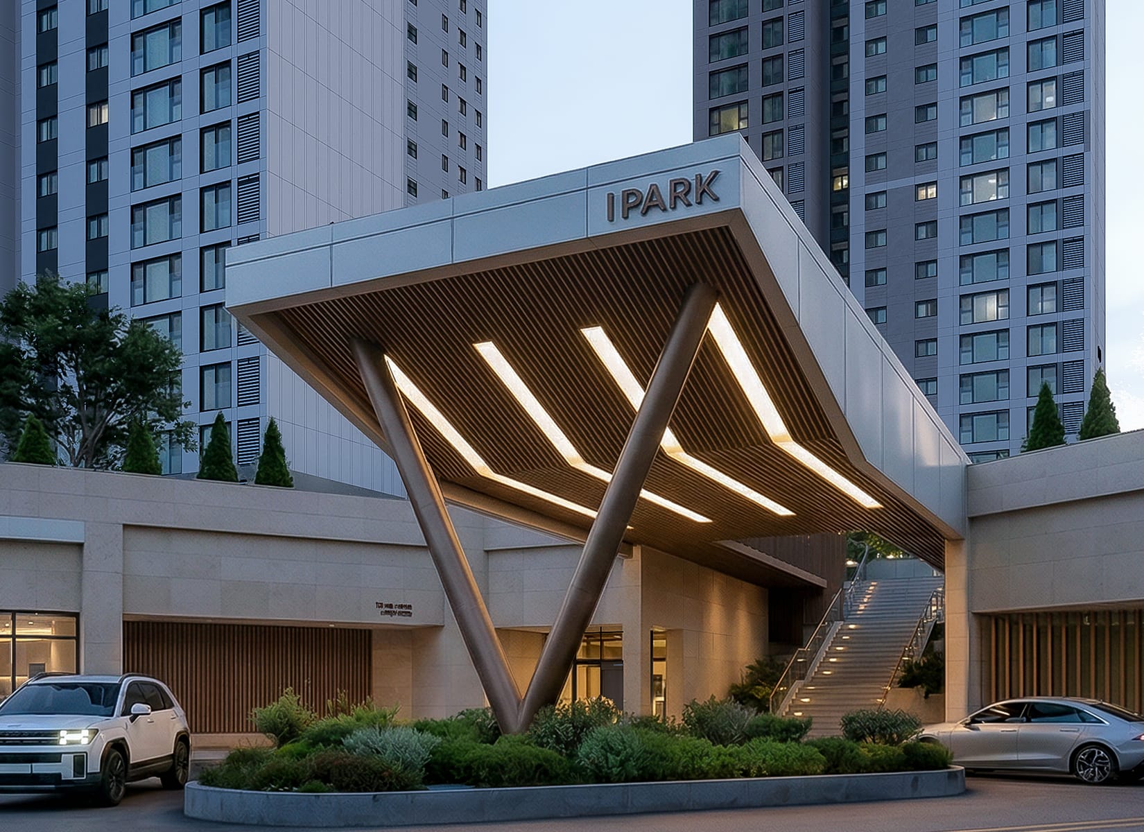 첫 인상을 완성하는 외관IPARK의 주동 디자인은 단순한 외관을 넘어