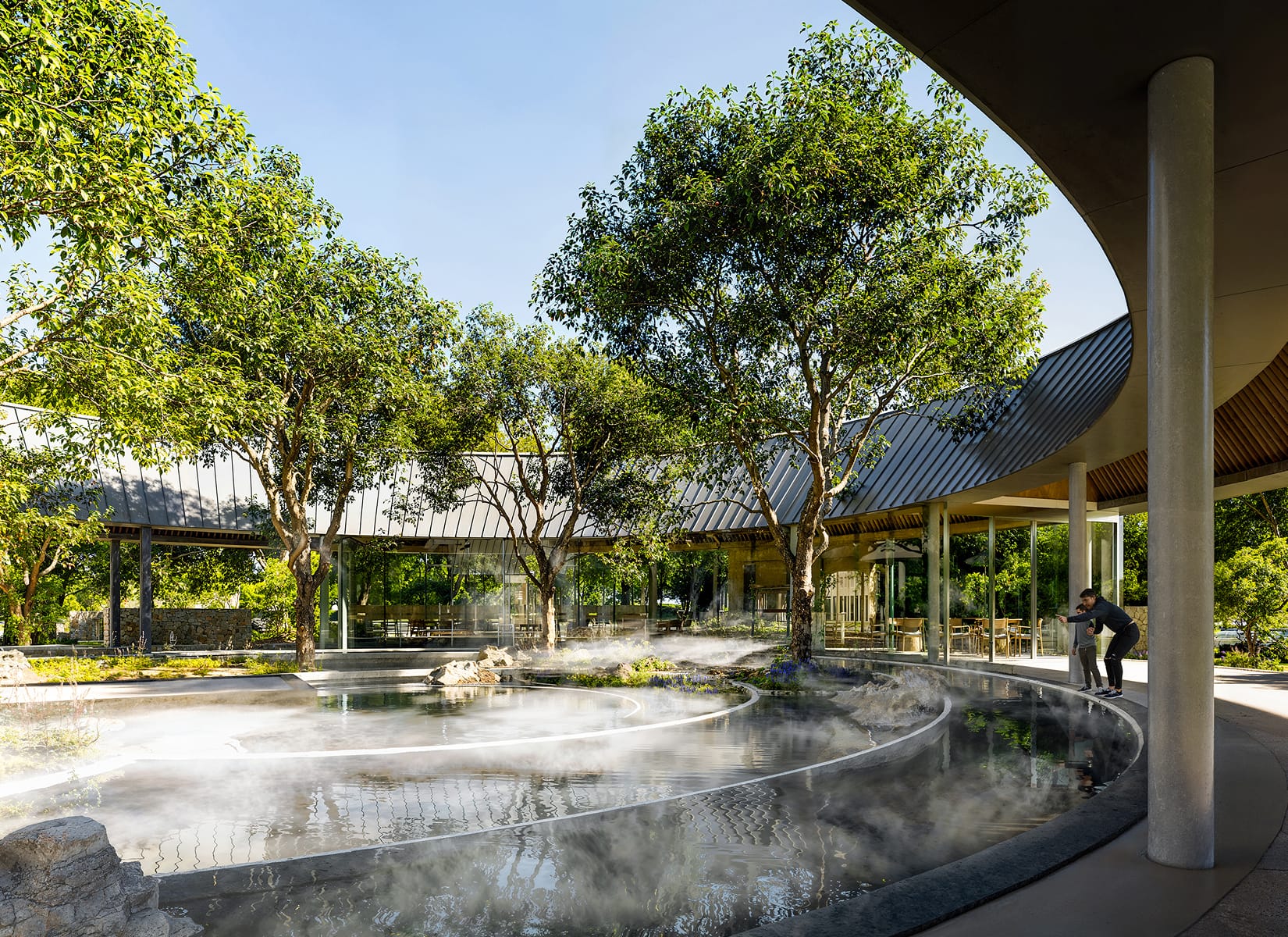 숲·대지·물 등 자연에서 추출한 5가지 디자인 모티프가 건물과 외부 공간 전반에 생명력 있게 반영되어, 각 구조물 자체가 하나의 작품처럼 살아 있으며,