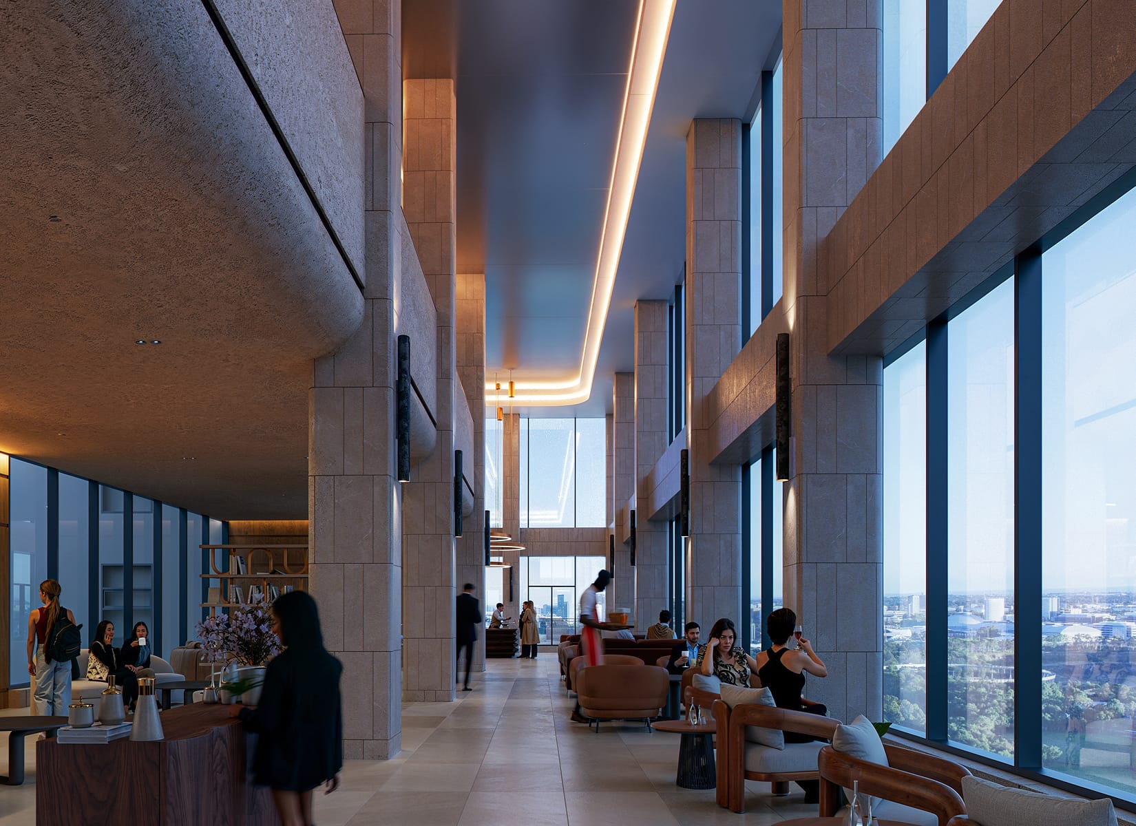 도심의 풍경과 하늘이 맞닿는 공간.루프탑 조경과 열린 조망이 어우러져